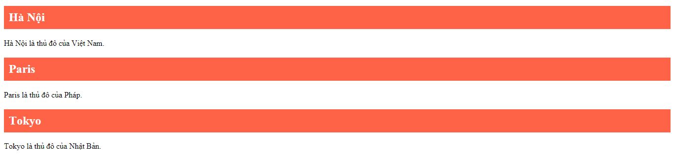 Ví dụ dùng CSS để tạo kiểu cho tất cả các phần tử có tên lớp là “thành phố”