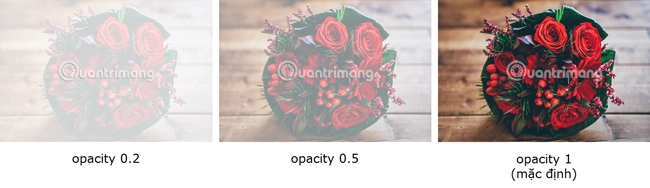 Thuộc tính opacity có thể lấy giá trị từ 0.0 – 1.0, giá trị càng nhỏ thì độ trong suốt càng nhiều.