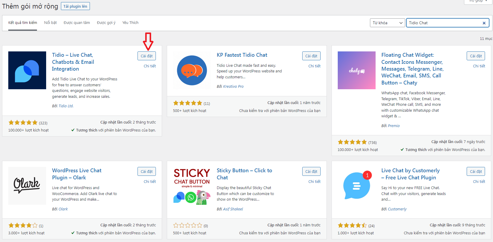 Xuất hiện cửa sổ “Cài mới”, nhập từ khóa “Tidio Chat” vào ô tìm kiếm.