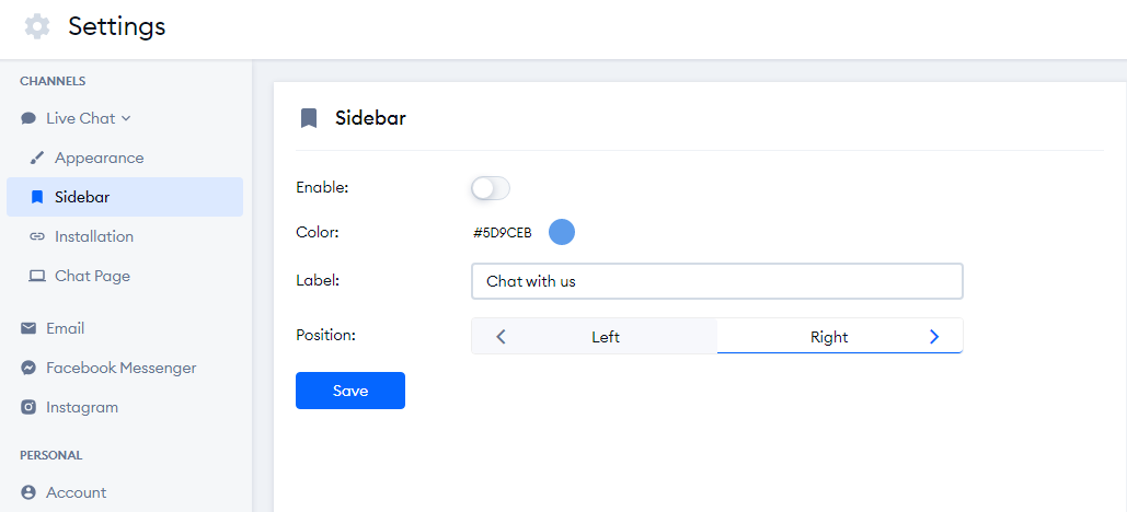 Biểu tượng trò chuyện mặc định di chuột ở góc dưới cùng bên phải hoặc bên trái của trang. Nếu điều đó bao phủ một phần nội dung của bạn, bạn có thể thay đổi nó thành liên kết Sidebar.