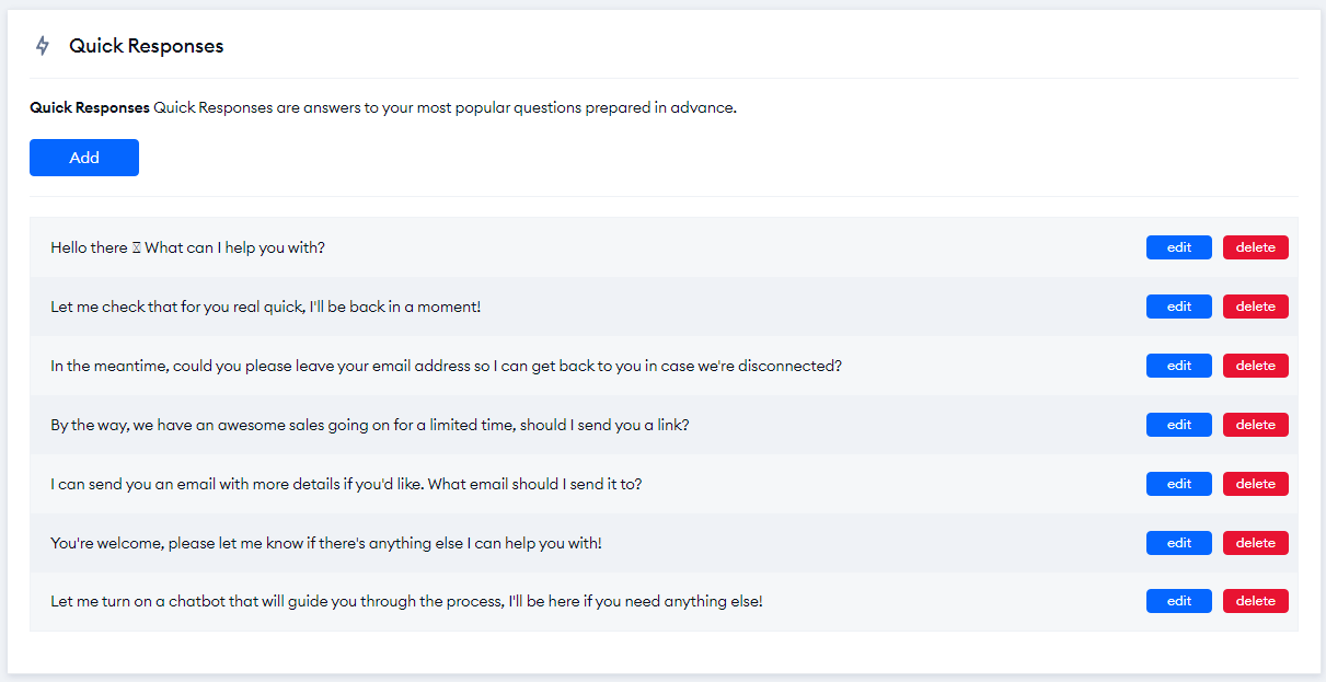 Bạn cũng có thể chỉnh sửa hoặc xóa các câu trả lời nhanh đã có sẵn.