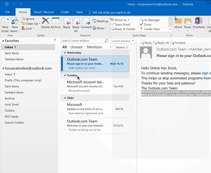 Trước khi chạy code, bạn phải chuẩn bị outlook 1 chút để có thể thành công.