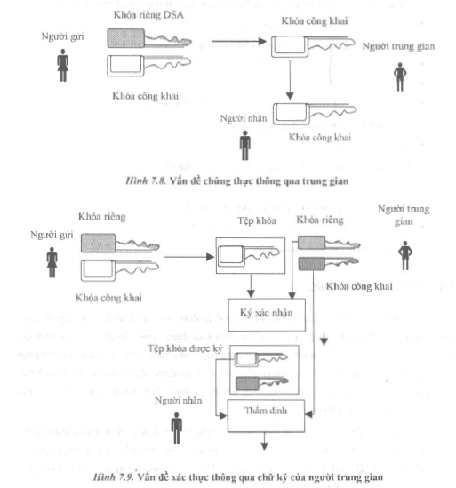 (người, hay một tổ chức môi giới, một cơ quan có thẩm quyền). Người gửi gặp người trung gian trao tài liệu và khóa công khai, sau đó anh ta trao lại cho bạn (xem hình 7.8).
