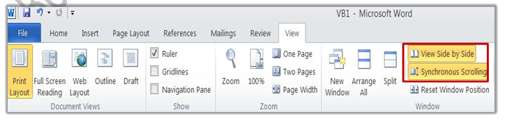 – Cách xem 2 văn bản cạnh nhau – View side by side