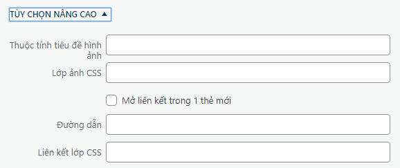 - Liên kết tới: Link khi Click vào ảnh. Bao gồm 3 tùy chọn: Trống, Đường dẫn của ảnh và URL tùy chỉnh.