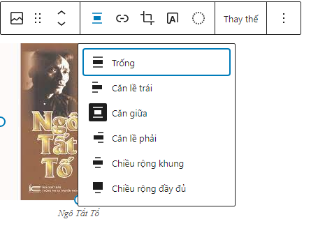 - Chỉnh căn lề: Bạn có thể đã thấy một số bài viết phổ biến sử dụng hình ảnh với văn bản được viền xung quanh. Điều này được thực hiện bằng cách sử dụng tính năng “Căn lề”. Kích chuột vào nút “Chỉnh căn lề” sẽ thấy một trình thả xuống gồm 6 chế độ căn lề cho bạn tùy chọn: trống, căn lề trái, căn giữa, căn lề phải, chiều rộng khung và chiều rộng đầy đủ.